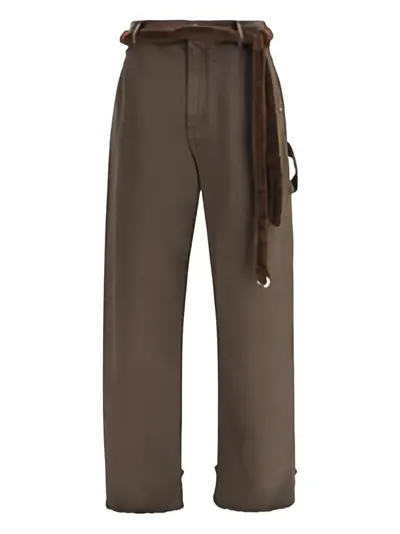 brown faux fur belt belt loops frayed hem back patch pockets side tool loop