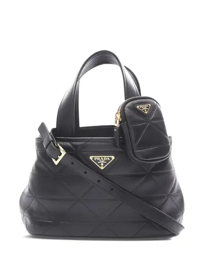 2010s black quilted top handle detachable shoulder strap includes a pouch gold-tone hardware Condition: GOOD. This previously owned and used item is in good condition with minimal signs of use. This may include fading of material or plating and scratches.