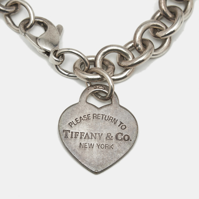 This Tiffany and Co. bracelet is crafted from sterling silver and features the iconic Return To Tiffany heart tag charm. Its delicate chain and engraved detailing reflect enduring simplicity. A timeless piece that captures the brand’s storied heritage and everyday elegance.