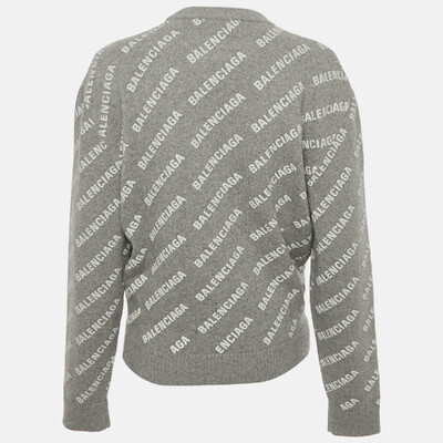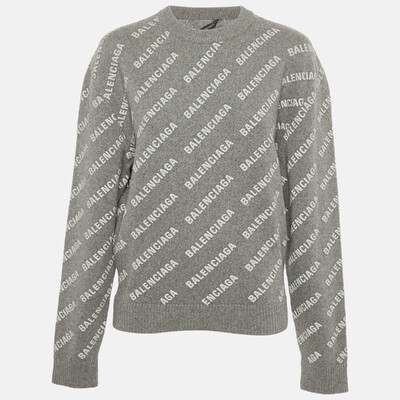 Wrap yourself in luxury with this Balenciaga cashmere sweater adorned with all over logo print in subtle grey tones. Soft, lightweight, and undeniably statement making, it strikes the perfect balance between luxury and logomania. The ultimate off duty essential.