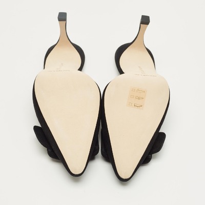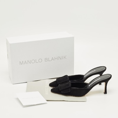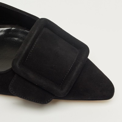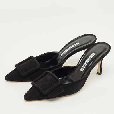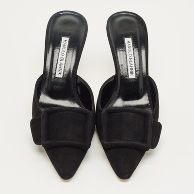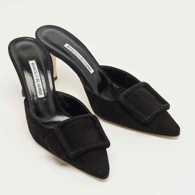Manolo Blahnik’s Maysale mules are sculpted in black suede, featuring the brand’s signature buckle detail at the front. The pointed toe and modest heel create an elegant, versatile profile. A sophisticated choice that captures the designer’s timeless vision of femininity.