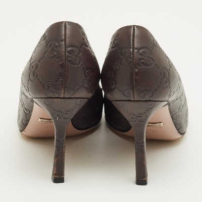 These Gucci Jolene pumps combine classic brown monogram leather with a refined horsebit accent for a touch of equestrian glam. The sleek silhouette makes them perfect for both office and evening wear. A polished essential for the discerning dresser