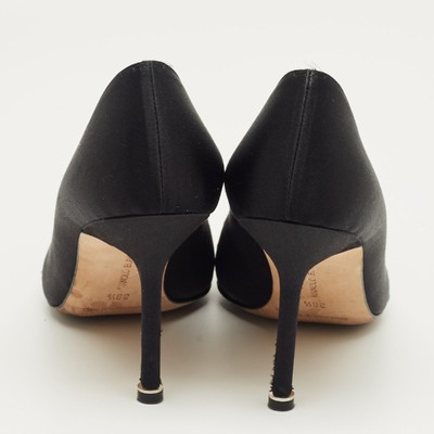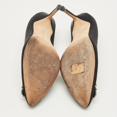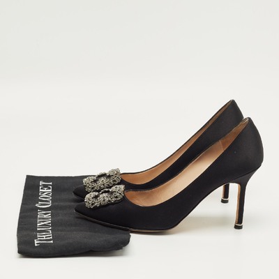 Manolo Blahnik Black Satin Hangisi Crystal Embellished Pumps Size 38.5 1235379 (чёрный, lpn31096655)