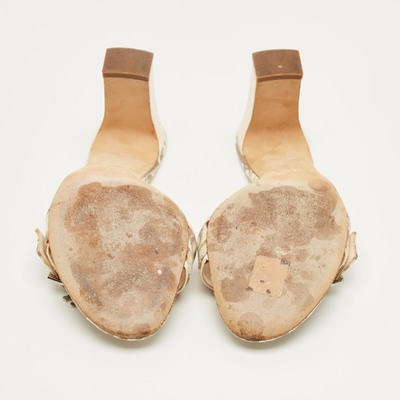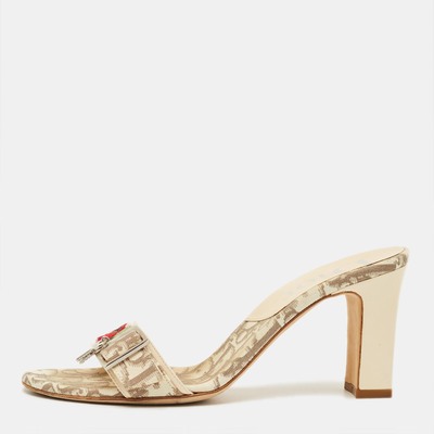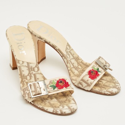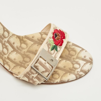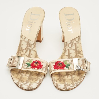 Dior Beige Coated Canvas Flower Embroidered Slide Sandals Size 37 1235388 (бежевый, lpn31096686)