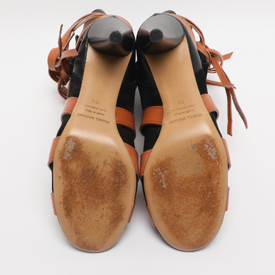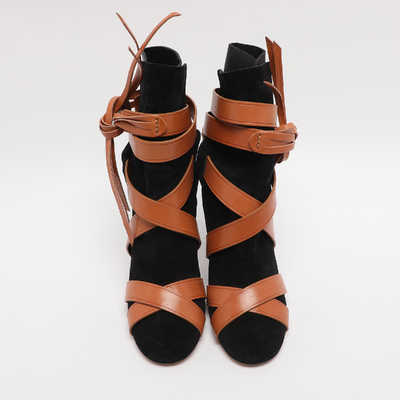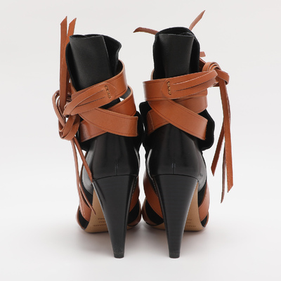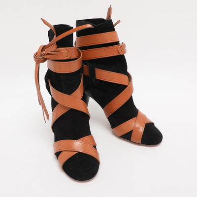 Effortlessly cool, these Isabel Marant mid calf boots combine black leather and suede with casual Parisian charm. The contrasting lace up detailing along with tie around detailing around the ankle make this pair a standout choice.