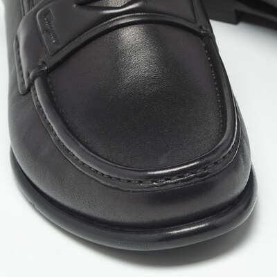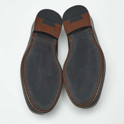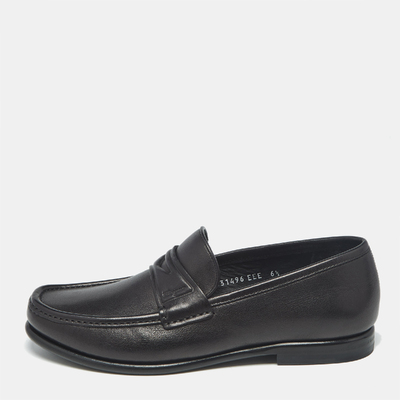 These Salvatore Ferragamo loafers are crafted from smooth black leather in a classic slip on silhouette. Designed for effortless sophistication, they feature a rounded toe, subtle top stitching, and a comfortable sole for daily wear. A timeless style that complements both tailored and casual ensembles with equal finesse.
