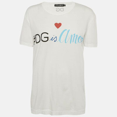 Dolce and Gabbana’s T shirt is made from white jersey and printed with the bold DG logo across the chest. The short sleeves and crew neckline complete its effortless silhouette. A wardrobe staple that delivers statement style with everyday wearability.