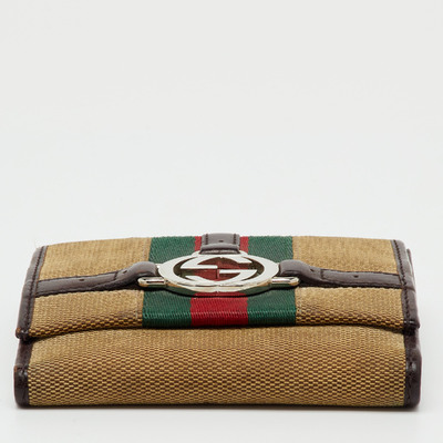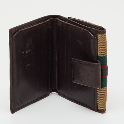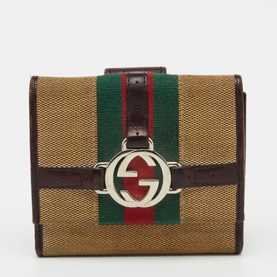This Gucci GG Reins wallet combines heritage beige canvas with signature Web detailing for a chic vintage flair. Its compact silhouette offers cleverly organized storage without the bulk. A timeless piece for fashion lovers who appreciate subtle luxury.