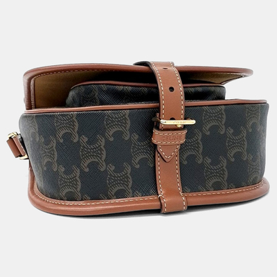 Celine’s Brown Coated Canvas Folco Bag in medium size captures classic French minimalism with a refined, contemporary edge. Durable yet elegant, this authentic designer crossbody is ideal for everyday style, blending practicality with signature Celine elegance.