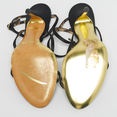 Roberto Cavalli transforms satin into art with these ankle strap sandals. A sculpted snake, encrusted with crystals, coils across the upper like a jewel in motion, while the slim heel lifts the wearer gracefully.