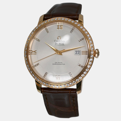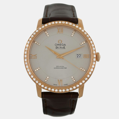 Omega De Ville 42458402052002 Automatic Cream diamonds 18k Rose gold Men's Wristwatch 39.5 mm 1234787 (lpn31096877)