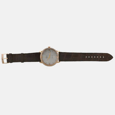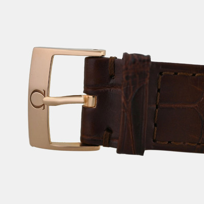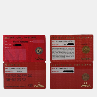 The Omega De Ville 424.58.40.20.52.002 presents a 39.5 mm 18k rose gold case with a cream colored dial set with diamonds. Its automatic movement delivers smooth performance, showcasing Omega’s attention to both aesthetics and precision.