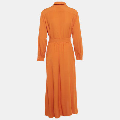 Weekend Max Mara presents this midi dress in smooth orange crepe, designed with a defined waistline and coordinating belt. The flowing skirt and precise tailoring create a graceful silhouette suitable for both daytime wear and polished occasions. A vibrant piece that blends timeless appeal with subtle femininity.