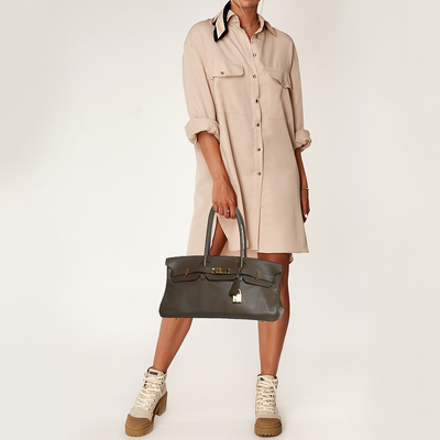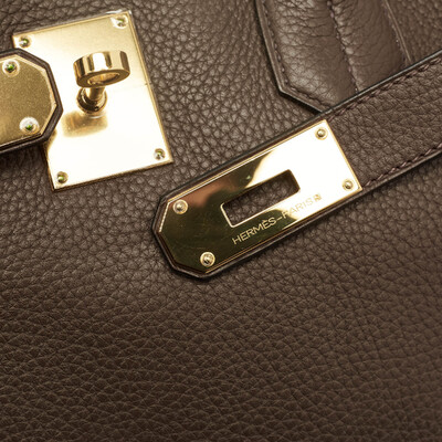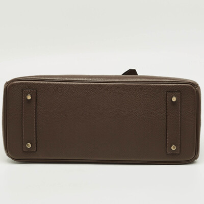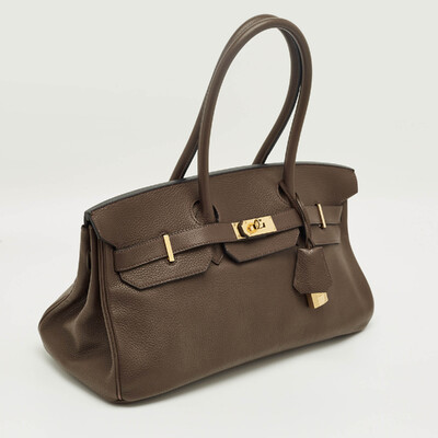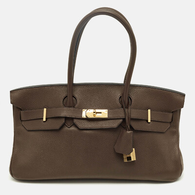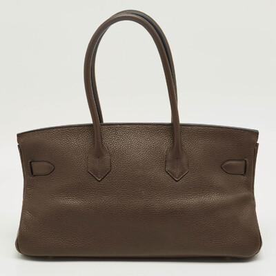 This Hermès Shoulder Birkin JPG 42 bag is rendered in Chocolat Taurillon Clemence leather with gold finish accents. The elongated silhouette and relaxed top handles enhance its versatility. A distinguished design that captures the essence of Hermès luxury in an effortlessly wearable form.
