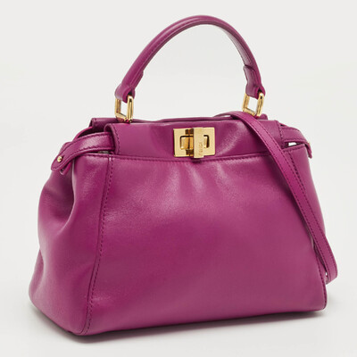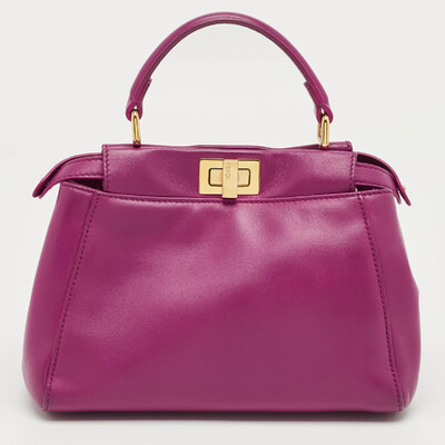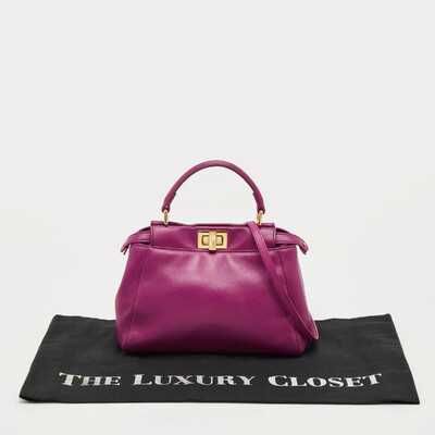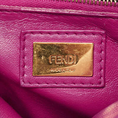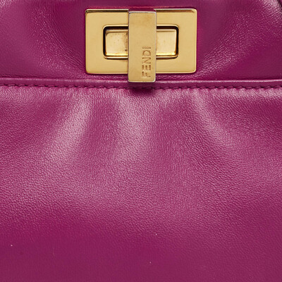 This Fendi preloved Mini Peekaboo is crafted from fuchsia leather with the signature twist lock closure. The gold hardware gives it a fine gleam, while the bold color keeps it fresh.