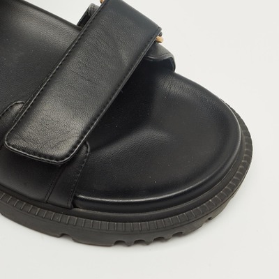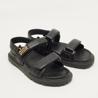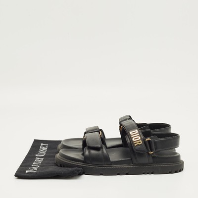 Dior’s DiorAct slingbacks reinterpret style with two adjustable velcro straps for a customized fit. The upper strap is highlighted by a gold finish metal “Dior” signature, adding a mark of luxury. Rubber soles make these designer womens sandals ideal for all day wear.
