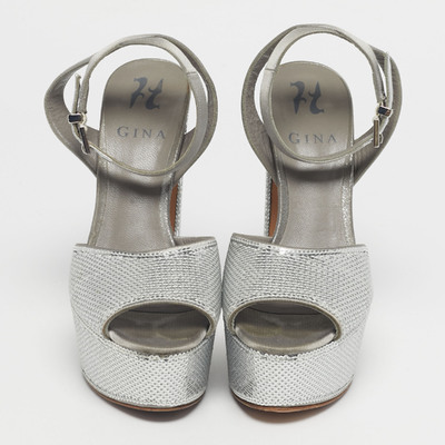 parkle with every step in these glamorous Gina platform sandals, crafted from grey satin and shimmering sequins. The dramatic heel and ankle strap add a red carpet ready finish. A dazzling choice for special occasions.