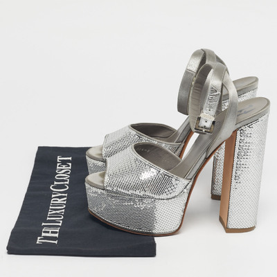 Gina Grey Satin and Sequins Platform Ankle Strap Sandals Size 36.5 1234500 (lpn31096965)