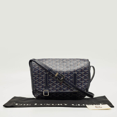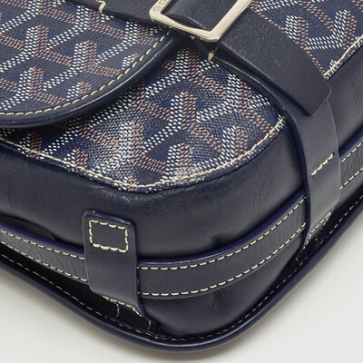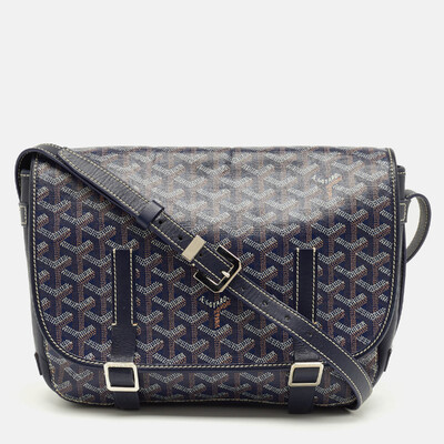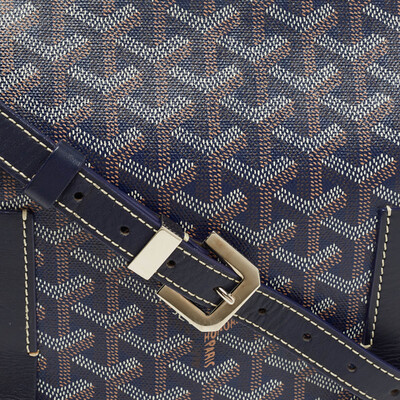 Crafted in signature Goyardine canvas, the Belvedere MM in blue offers equestrian inspired style with timeless appeal. Its saddle silhouette, adjustable strap, and practical interior compartments make it a standout crossbody for those who favor understated luxury.