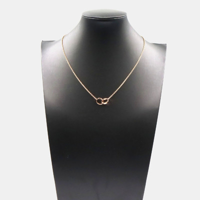 This Cartier Love Interlocking Necklace in 18K rose gold is a timeless emblem of affection and elegance. Its intertwined design symbolizes connection and commitment, while the polished rose gold offers a warm, sophisticated glow, perfect for elevating both casual and formal ensembles.