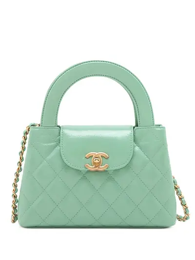 This satchel features a quilted leather body, flat leather top handles, a gold-tone leather woven chain link shoulder strap, a top flap with CC turn lock closure, and interior zip and slip pockets. Green. Serial Number: UN49980H. This item has no inclusions. Condition: EXCELLENT. This previously owned item is in near-perfect condition with no signs of damage or use. Due to the exclusivity of this item and its limited availability, processing and delivery might take longer than usual. Please refer to the photos on this product page for a detailed view of the item, including any damages declared.