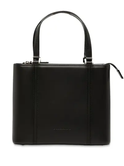 This handbag features a leather body, flat leather handles, a top zip closure, and interior zip and slip pockets. Black. Inclusions: dust bag. Condition: GOOD. This previously owned and used item is in good condition with minimal signs of use. This may include fading of material or plating and scratches. Please refer to the photos on this product page for a detailed view of the item, including any damages declared.