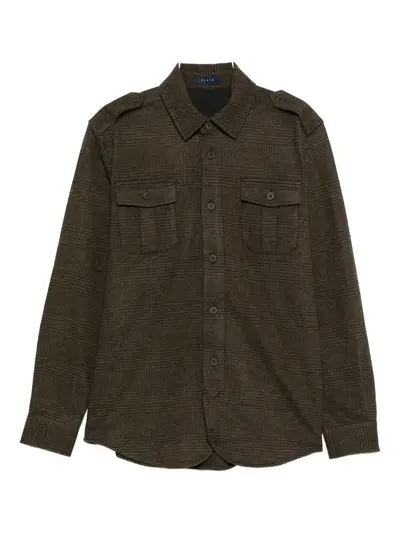 olive green check pattern front button fastening point collar flap pockets epaulettes