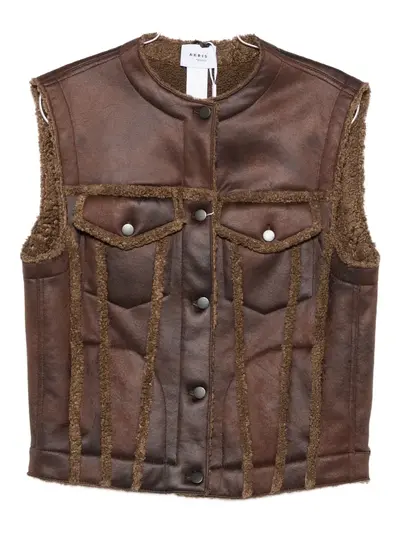 brown button fastening chest pockets round neck sleeveless