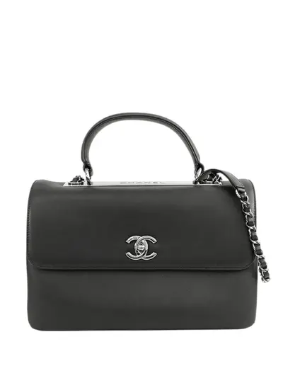 lambskin leather body flat leather top handle detachable leather-woven chain link strap with leather guard front flap with CC turn-lock closure exterior back slip pocket interior zip and slip pockets.Black.Inclusions: box dust bag authenticity card shoulder strap.Condition: GOOD. This previously owned and used item is in good condition with minimal signs of use. This may include fading of material or plating and scratches.Due to the exclusivity of this item and its limited availability processing and delivery might take longer than usual.Please refer to the photos on this product page for a detailed view of the item including any damages declared