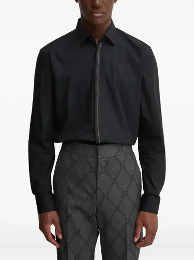 black embellished placket button fastening long sleeves buttoned cuffs classic collar