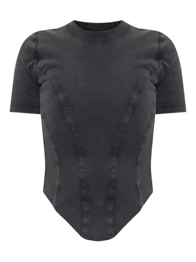 dark grey cotton short sleeves panelled design round neck tonal stitching