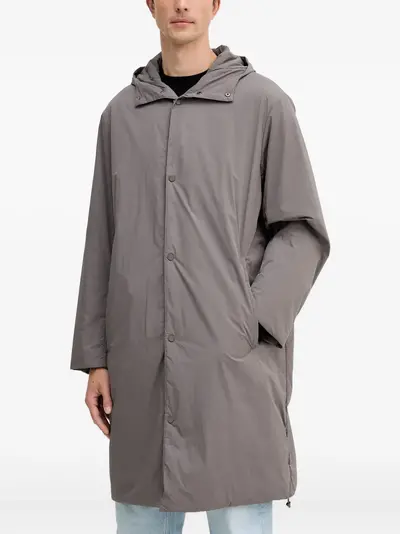 grey hooded button fastening long sleeves drawstring hem slip pockets