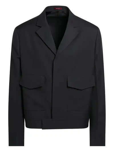 dark blue single-breasted closure patch pockets notched lapels long sleeves straight hemline