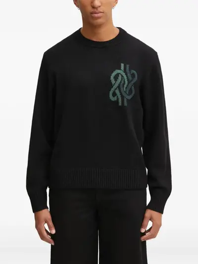 black embroidered detail crew neck ribbed hem ribbed cuffs long sleeves
