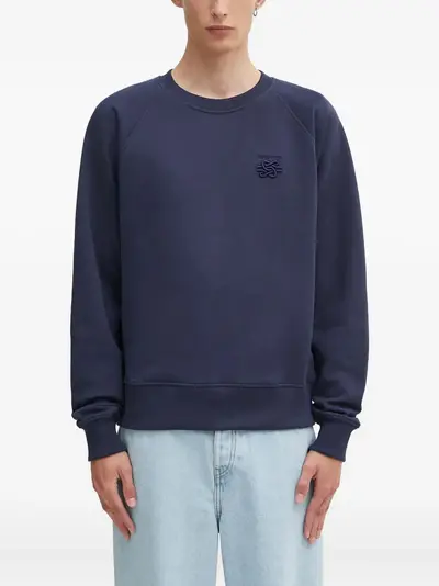 dark blue embroidered detail crew neck raglan sleeves ribbed hem ribbed cuffs