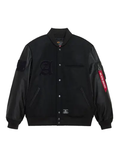 black patch-detail press-stud fastening long sleeves ribbed trims