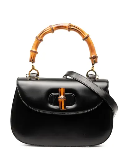 leather body bamboo top handle detachable flat leather shoulder strap flap with bamboo turn lock closure interior zip and slip pockets.Black.Serial Number: 000 2046 0633.Inclusions: shoulder strap.Condition: EXCELLENT. This previously owned item is in near-perfect condition with no signs of damage or use.Please refer to the photos on this product page for a detailed view of the item including any damages declared
