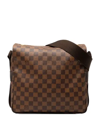 damier ebene canvas body with leather trim flat adjustable strap top flaps with snap closure top zip closure interior slip pocket.Brown.Serial Number: NO1908.This item has no inclusions.Condition: GOOD. This previously owned and used item is in good condition with minimal signs of use. This may include fading of material or plating and scratches.Due to the exclusivity of this item and its limited availability processing and delivery might take longer than usual.Please refer to the photos on this product page for a detailed view of the item including any damages declared