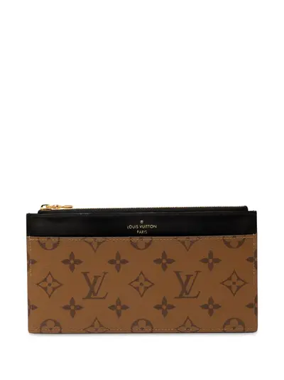 monogram reverse canvas body with leather trim top zip closure exterior card slots brown Inclusions: dust bag. Condition: EXCELLENT. This previously owned item is in near-perfect condition with no signs of damage or use. Due to the exclusivity of this item and its limited availability, processing and delivery might take longer than usual. Please refer to the photos on this product page for a detailed view of the item, including any damages declared.