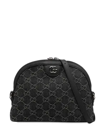 The Ophidia dome bag features a denim body with leather trim, an adjustable flat leather shoulder strap, a top zip closure, Black. Serial Number: 499621 486628. This item has no inclusions. Condition: EXCELLENT. This previously owned item is in near-perfect condition with no signs of damage or use. Due to the exclusivity of this item and its limited availability, processing and delivery might take longer than usual. Please refer to the photos on this product page for a detailed view of the item, including any damages declared.