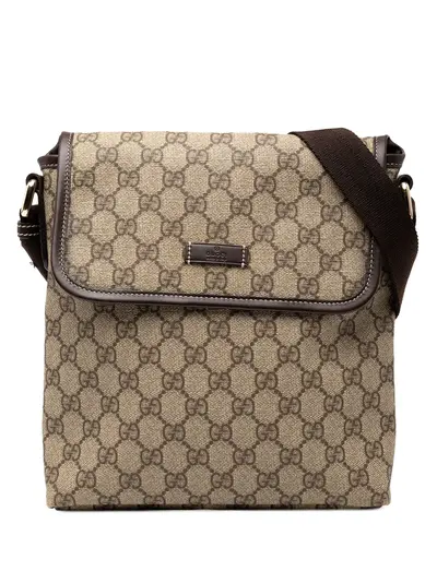 This crossbody bag features a coated canvas body with leather trim, an adjustable flat shoulder strap, a front flap with a magnetic snap closure, and an interior slip pocket. Brown. Serial Number: 223666 493075. This item has no inclusions. Condition: GOOD. This previously owned and used item is in good condition with minimal signs of use. This may include fading of material or plating and scratches. Declared Damages: Handle/Strap Feature(s) Minor Loose Stitching. Please refer to the photos on this product page for a detailed view of the item, including any damages declared.