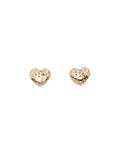 14K yellow gold heart motif post back fastening engraved logo These earrings come as a pair. Normal everyday use and external agents may reduce the lustre of gemstones and gold surfaces. To maintain, use specific, non-abrasive products specially meant for cleaning jewellery.