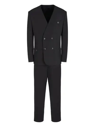 black virgin wool-blend double-breasted button fastening V-neck patch pockets