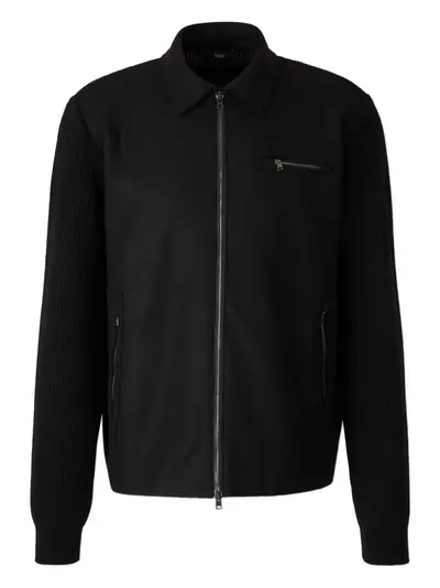black ribbed sleeves zip fastening chest zip pocket point collar ribbed hem