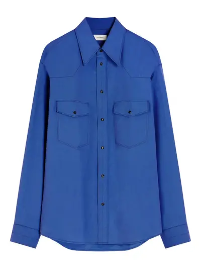 electric blue pearlscent buttons yoke detail chest pockets button fastening