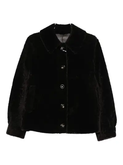 dark brown button fastening collar long sleeves patch pockets