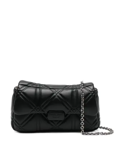 black quilted design chain-link shoulder strap top flap logo detailing magnetic closure