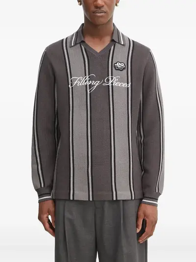 grey vertical stripe pattern v-neck long sleeves ribbed trims logo detail