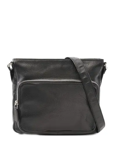 circa 2000s black leather zip fastening adjustable strap flap closure