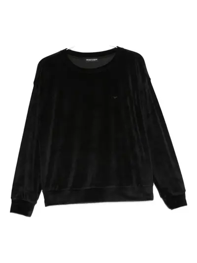 black velvet effect logo detail round neck long sleeves elasticated hem